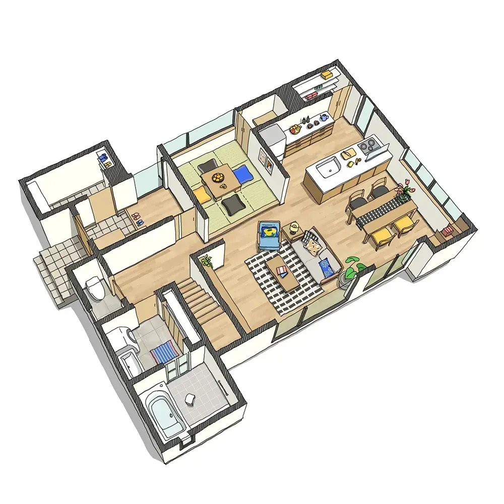 本業の傍ら、暮らしや建物にまつわるイラストを描いています。イラストで柔らかく伝えることで、見る人の想像が膨らむような